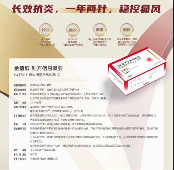 而金蓓欣(通用名:伏欣奇拜单抗)作为国内首个获批用于急性痛风性关节炎的IL-1β全人源单克隆抗体,于2025年6月30日正式获得国家药监局批准上市。